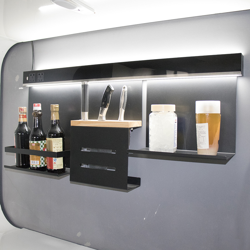 包含LED挂杆1个,插刀架1个,单层调味架1个,单层置物架1个